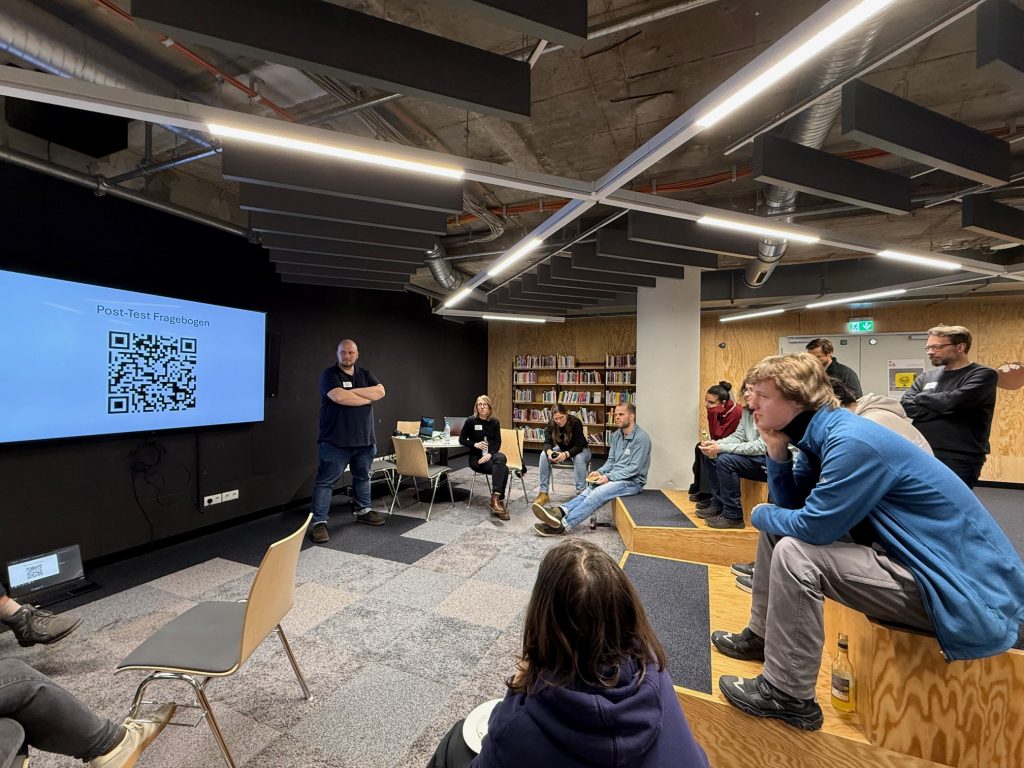 Mit den beiden Nutzerfragebögen (Pre- und Post-Test) über Smartphone wurden zahlreiche Rückmeldungen während der Spielrunde – mit Screenshots und Markierungsmöglichkeit – und in der abschließende Diskussion gesammelt, die wichtig für die Weiterentwicklung des Spiels sind.